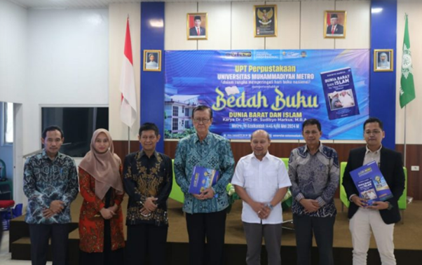 Menyambut momentum Hari Buku Nasional, Mahasiswa S2 Pendidikan MAtematika mengikuti kegiatan diskusi literasi mendalam dengan membedah buku 'Dunia Barat dan Islam' yang digelar oleh UPT Perpustakaan UM Metro. Karya fenomenal milik Dr. (HC) dr. Sudibyo Markus, M.B.A. seorang tokoh yang mendalami hubungan antarperadaban. ini dikupas tuntas di Aula HI Kampus 1 UM Metro pada Sabtu (18/04/2024).